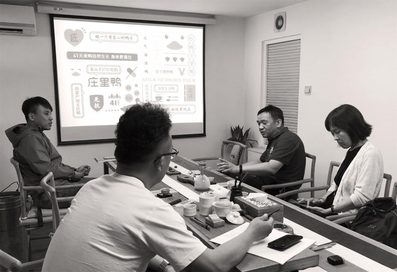 后眾項目團隊與莊里鴨餐飲品牌董事長許亮先生進行方案的溝通與探討