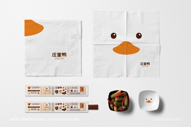 基于后眾設(shè)計視覺策略中易識別、易記憶、易傳播的視覺設(shè)計理論,以字體為主,將鴨的符號植入,是莊里鴨起步期最合適的策略和方法。