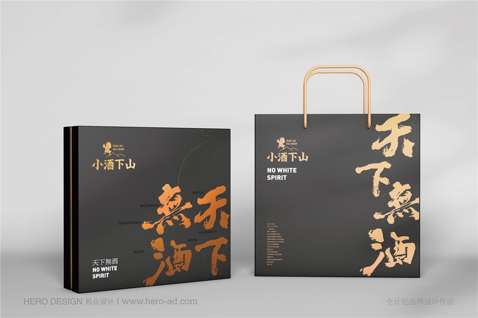 后眾設(shè)計攜手小酒下山,從消費飲用場景入手,小酒下山系列混裝小酒,將不同品牌的小酒打包銷售,特別適合聚會品鑒,將多樣化的飲用場景和消費體驗感傳達給消費者。同時,基于品質(zhì)相伴美好生活這一訴求,以中華十大名酒為基礎(chǔ),增加小酒的禮品及收藏屬性,打造天下無酒概念,一次飲盡天下美酒,自此天下再無酒。