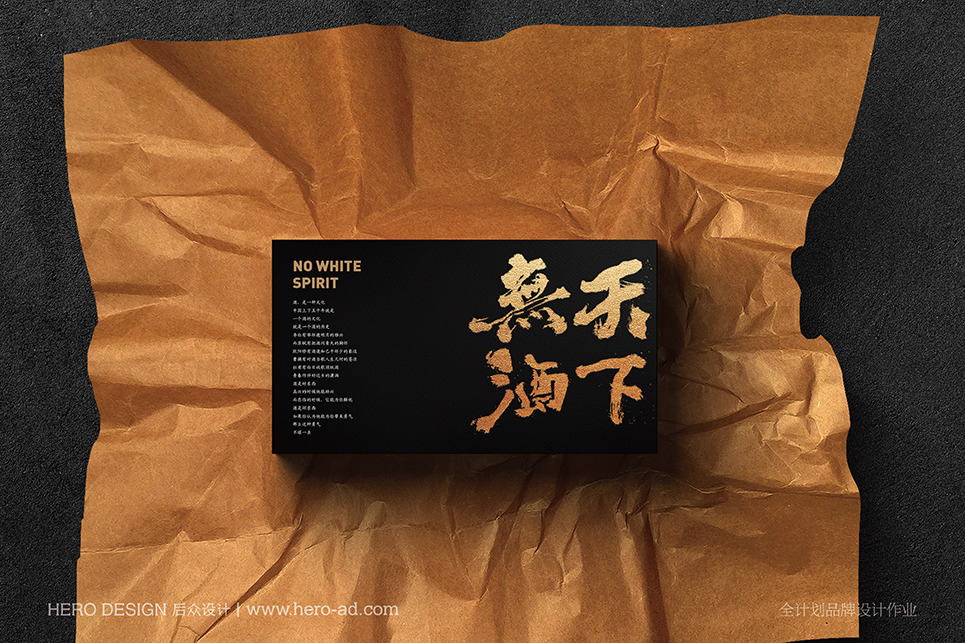 天下無酒的整體以傳統(tǒng)書法字體形態(tài)表現(xiàn),色彩以黑、金為主色調(diào),強調(diào)尊貴、禮品的屬性。字體挺拔朗峻、狂放自如,彰顯出天下無酒的沖天豪氣,與系列選酒品牌的名酒特性相匹配。