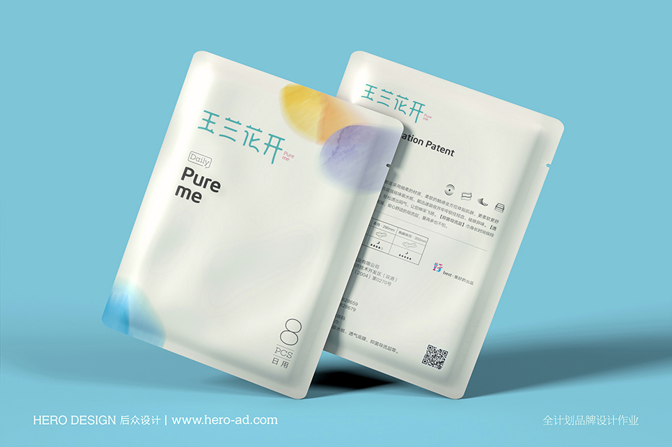 玉蘭花開包裝色彩的選用干凈而溫暖,符合衛(wèi)生巾品牌柔軟、貼心的品牌特性。畫面采用花瓣的特殊處理,使其形象更加抽象,貼合名稱所體現(xiàn)的意境。