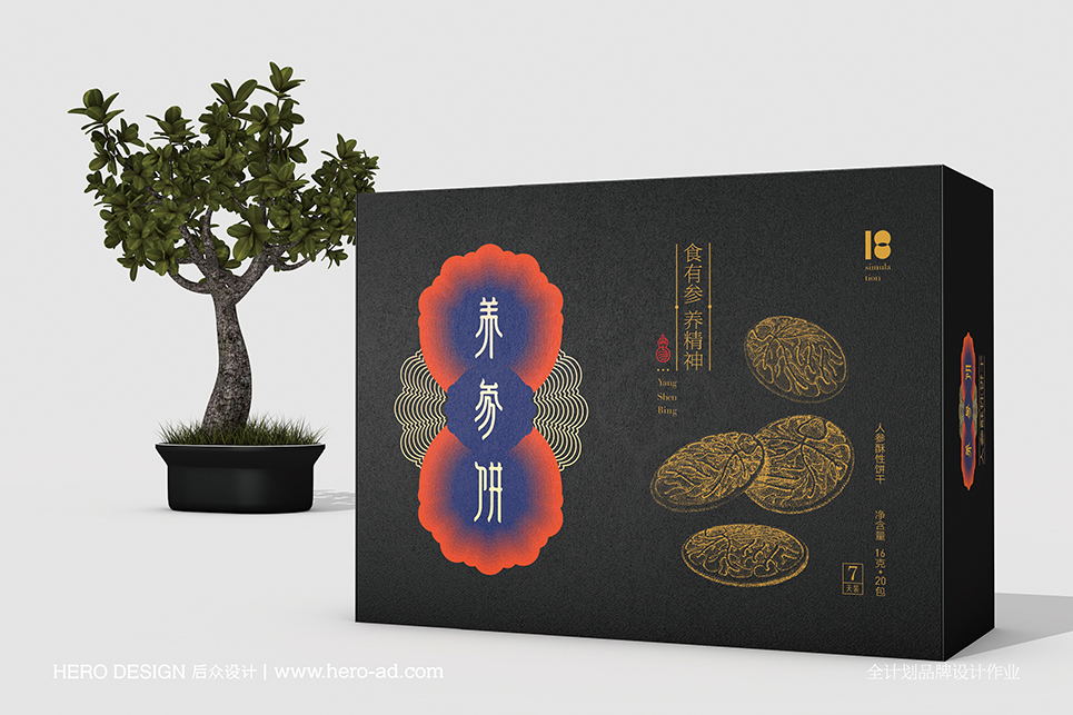 以嶺養(yǎng)參餅是以嶺健康城推出的專注于養(yǎng)益功效的功能性餅干,后者隸屬于石家莊以嶺藥業(yè)股份有限公司。以嶺養(yǎng)參餅定位于高端消費(fèi)人群,以“補(bǔ)氣血,旺精力”為產(chǎn)品訴求,提倡健康養(yǎng)生生活理念。委托人希望以嶺養(yǎng)參餅這款產(chǎn)品能夠傳遞出強(qiáng)烈的文化氣息,而不只是一款快消食品而已,后眾結(jié)合客戶的訴求,提出包裝“新中式”的視覺(jué)定位,以“健康養(yǎng)生的中式文化”為核心,進(jìn)行現(xiàn)代性的視覺(jué)圖形表現(xiàn)設(shè)計(jì),從而傳遞出濃烈的文化氣息。