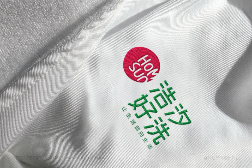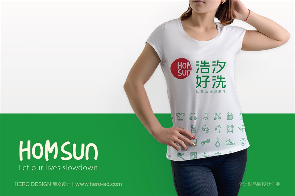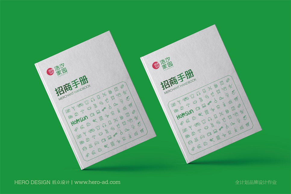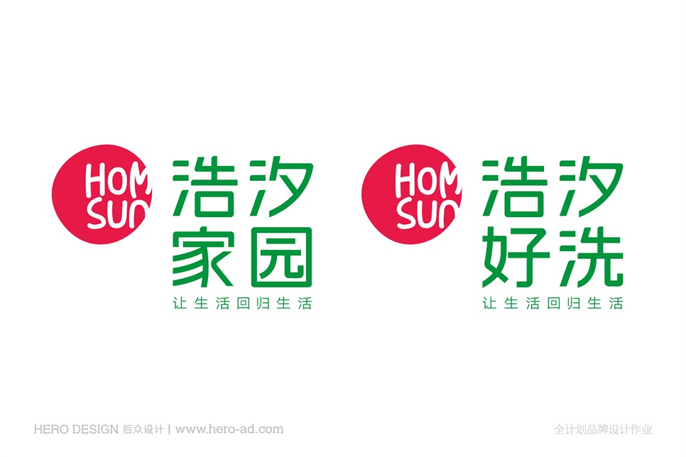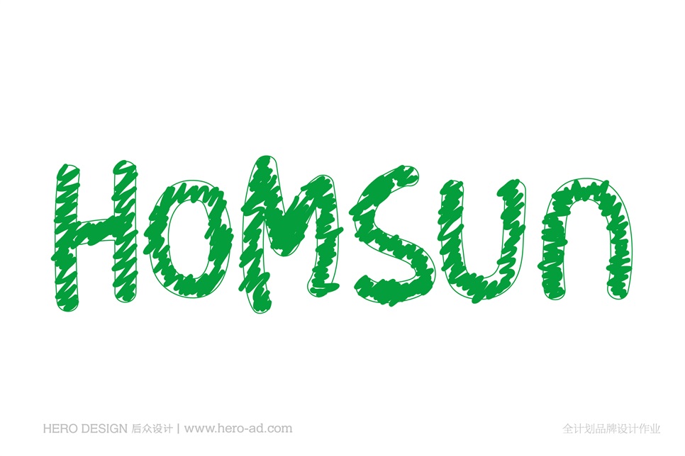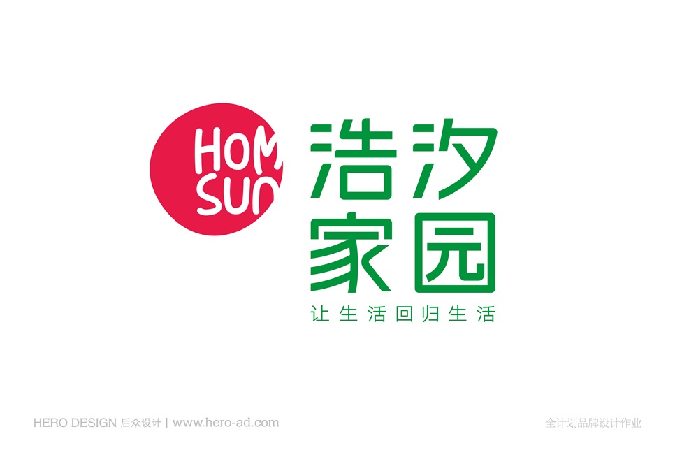 在策略的引導下,用設計來體現(xiàn)品牌內(nèi)涵,是接下來的工作。浩汐標識以浩汐家園中文為主,配合隨形圖形,植入品牌的英文名稱“homsun”,配合品牌Slogan共同組合。