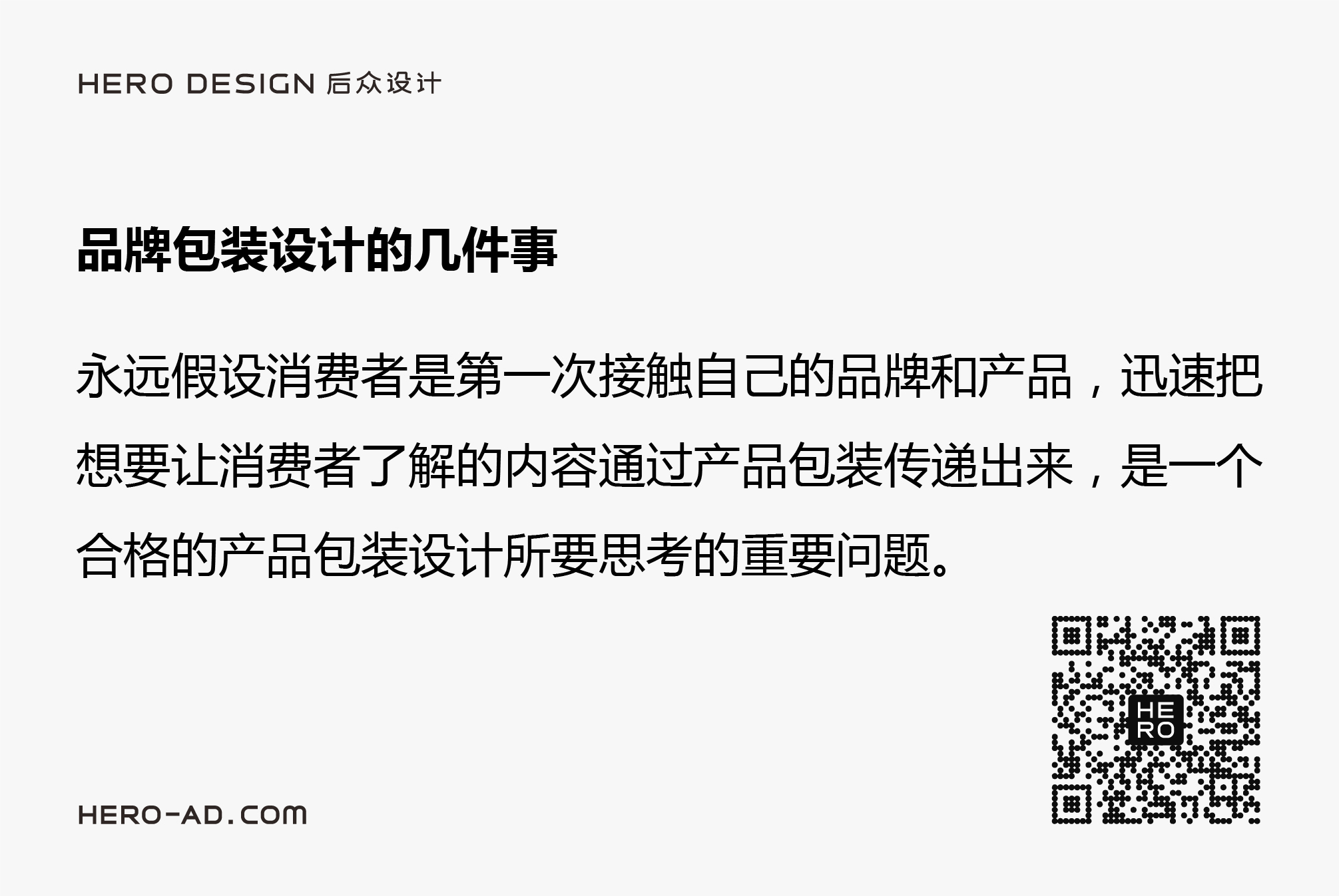 包裝設(shè)計(jì)過程中,要永遠(yuǎn)假設(shè)消費(fèi)者是第一次接觸,消費(fèi)者對(duì)產(chǎn)品和品牌一無所知。包裝設(shè)計(jì)的目的就是在消費(fèi)者目之所及處,迅速把這個(gè)產(chǎn)品想要讓消費(fèi)者了解的內(nèi)容傳遞出來,如果做到了,這就是一個(gè)合格的包裝設(shè)計(jì)。