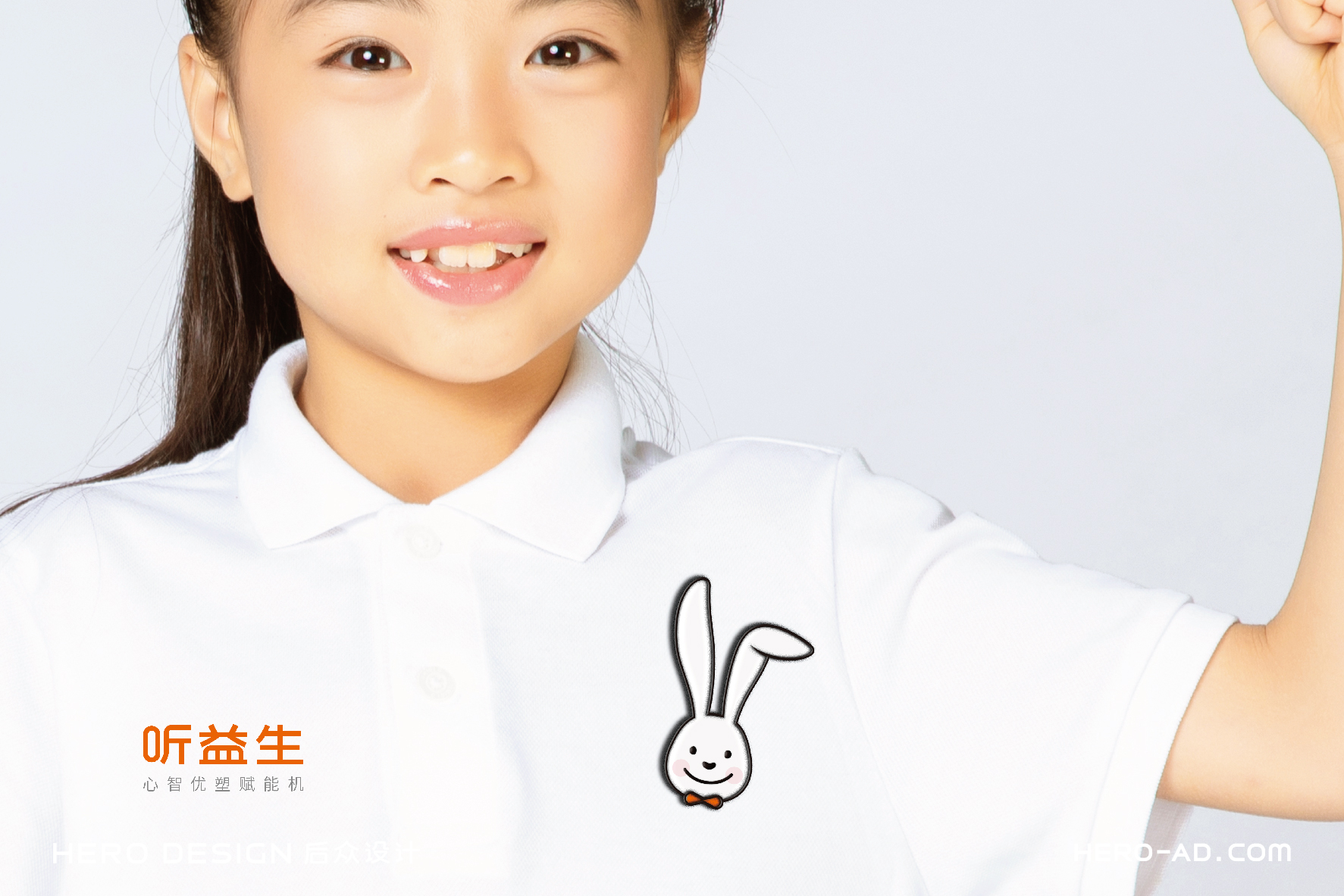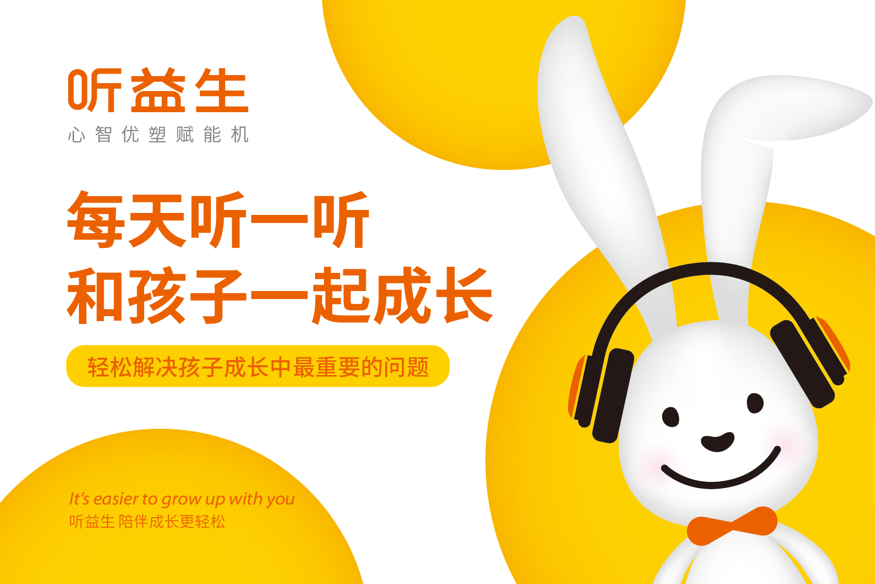 在童話里,兔子是乖巧伶俐、天真執(zhí)著、聰慧豁達(dá)、勇敢守信的形象代表,結(jié)合兔子本身雪白柔順的皮毛、長(zhǎng)長(zhǎng)的耳朵以及善于奔跑跳躍的特點(diǎn),一直是孩子們最喜愛(ài)的動(dòng)物形象之一。針對(duì)孩子喜愛(ài)可愛(ài)、萌系的卡通形象的群體特性,在聽(tīng)益生的視覺(jué)表現(xiàn)層面,我們?yōu)槁?tīng)益生創(chuàng)造一個(gè)戴著聽(tīng)益生心智優(yōu)塑賦能機(jī)的小白兔形象,以兔喻人,對(duì)真實(shí)的使用場(chǎng)景進(jìn)行展示,通過(guò)對(duì)品牌用戶喜好的精準(zhǔn)把握,拉近品牌與使用者的情感距離。