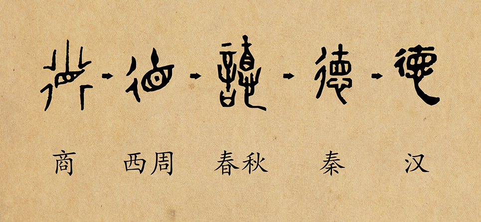 “德”字始見于商代甲骨文,從行、從直、從心,意為一個人行正、目正、心正,是為有德。而古“直”字由上面一豎,下面像一雙眼晴的橫“目”組成,代表對自然規(guī)律的測量,以目不斜視、剛正不曲表示直的概念。經(jīng)過無數(shù)年的變化與后世人們的修正調(diào)整,德字最終呈現(xiàn)出現(xiàn)代我們認(rèn)識的樣子。