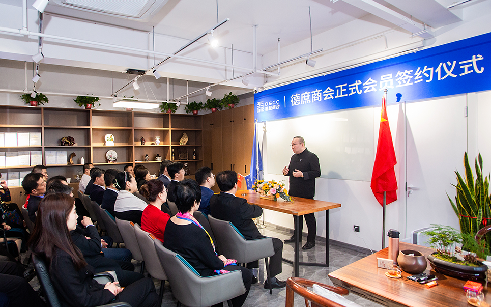 這是一張德庶商會會員活動結(jié)束后的合影,人們的臉上洋溢著飽滿而快樂的微笑。而胸前統(tǒng)一佩戴的德庶徽章,與熱情的氛圍交相輝映,展現(xiàn)出德庶商會的強(qiáng)大凝聚力和生命力。