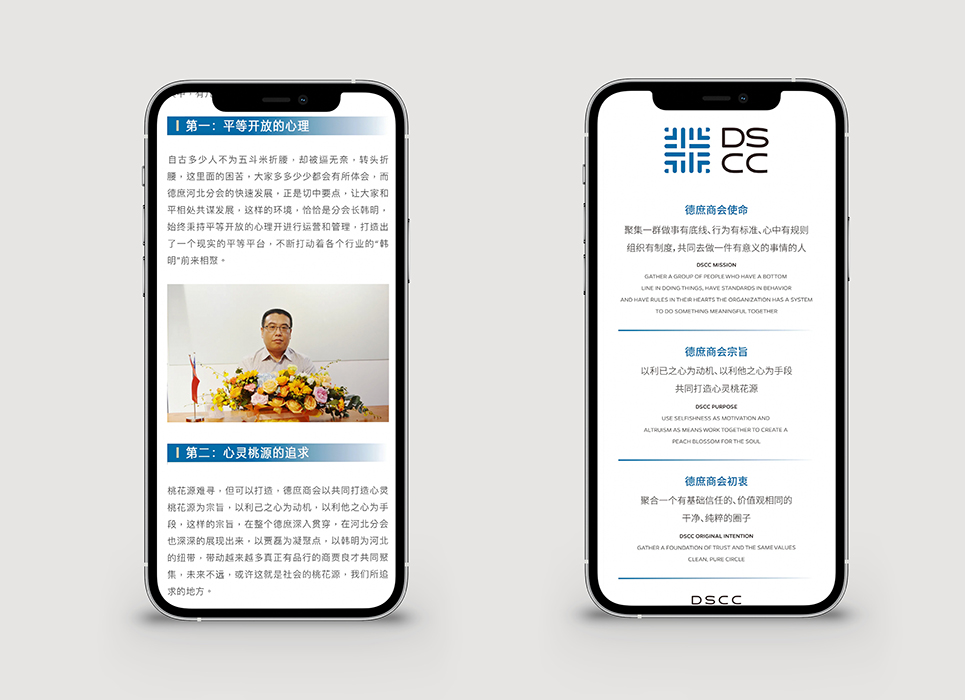 同時,針對商會的內(nèi)容傳播方向,我們還將德庶商會創(chuàng)始團(tuán)隊中的重要人物以傳記的形式進(jìn)行一一展示,通過對商會人物成長歷程的記錄敘述,展現(xiàn)每一個德庶人的成長故事,從而讓德庶真正成為人與人溝通交流的平臺,從人延伸到事,進(jìn)而邁向彼此事業(yè)成就的高峰。