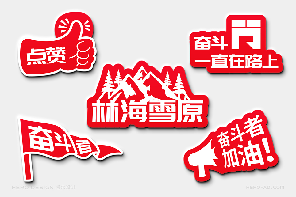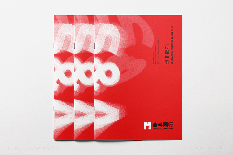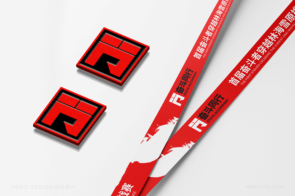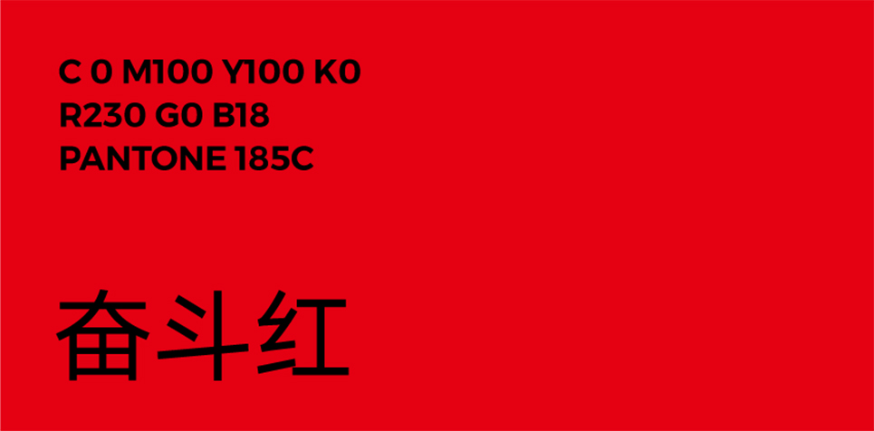 “奮斗同行”的品牌色彩選擇必須能夠展示奮斗者的活力與激情,同時要考慮到“奮斗同行”主要以戶外活動為主,多數(shù)時候是在草原、森林、戈壁等地方徒步行進(jìn),而由于個體體質(zhì)的差異,行進(jìn)隊伍不可避免的會拉長,而行走路線的沿途引導(dǎo),必須醒目,這就要求色彩的可見波長要長,色彩要盡量鮮艷,以保證遠(yuǎn)距離眺望觀測時的準(zhǔn)確。最終我們確定了紅色作為品牌的主色調(diào),我們將其稱之為“奮斗紅”。