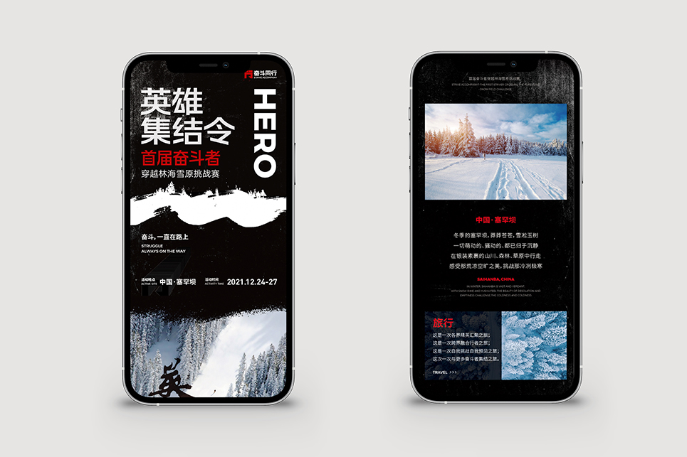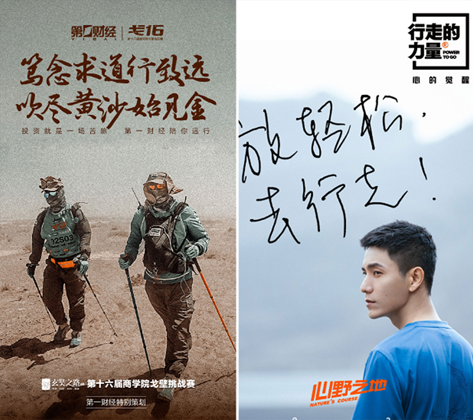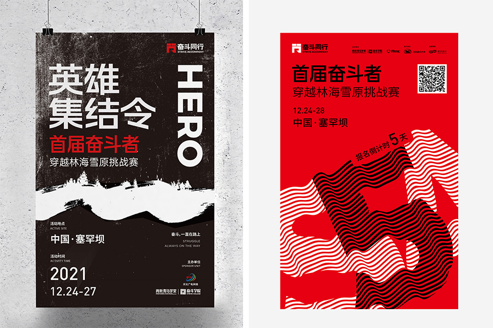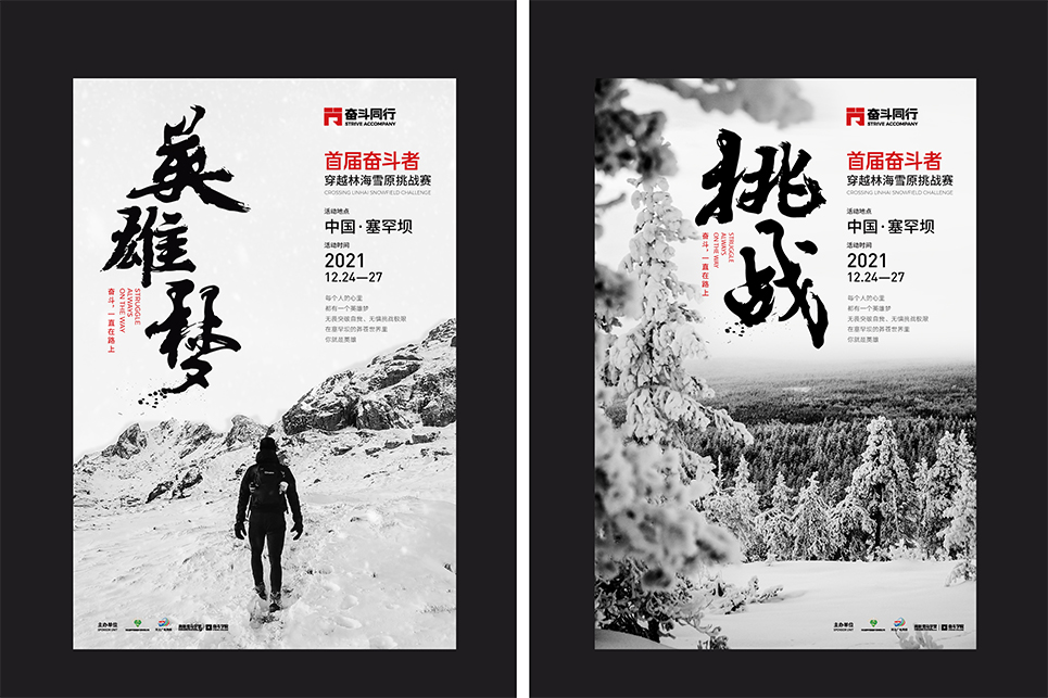 “奮斗同行”戶外成長實(shí)踐計劃成員招募以眾籌的形式進(jìn)行,眾籌招募的傳播過程,也是項(xiàng)目形象的展示過程,必須全面的展示出項(xiàng)目的意義和價值,也要通過具有感召力的文字和畫面,對奮斗者產(chǎn)生心理吸引,同時還要把項(xiàng)目的基本特點(diǎn)表述完整。一系列的招募海報,便是“奮斗同行”在奮斗者之間相互傳播與鼓舞的力量。